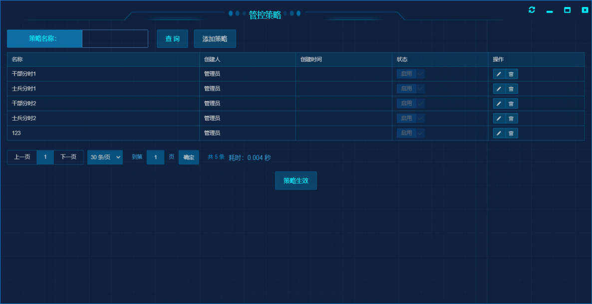 分时管控策略 | 针对不同的白名单实现不同时段的管控 | |