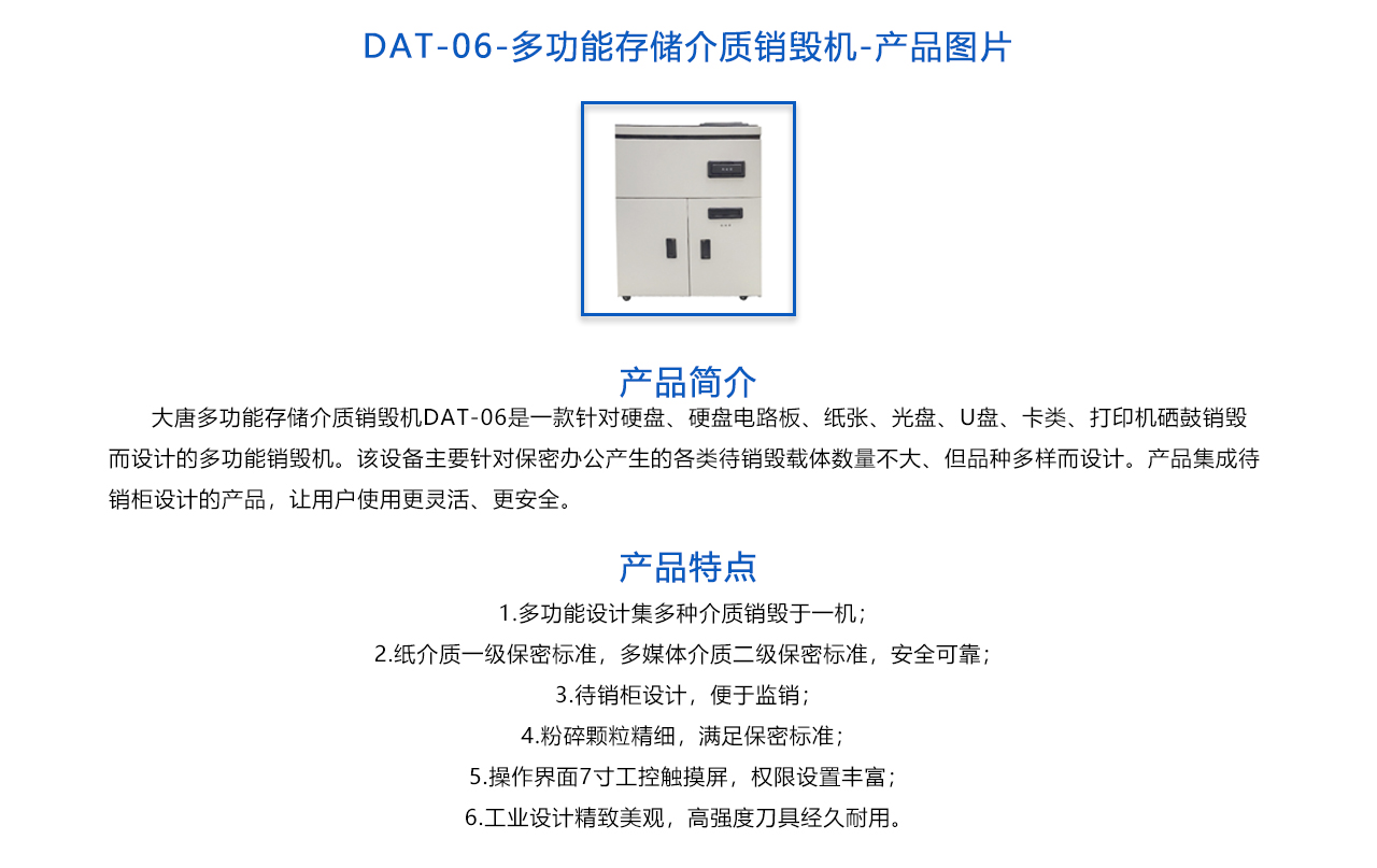 DAT-06消磁粉碎一体机是一款针对硬盘,硬盘电路板、光盘、纸张、U盘、卡类、打印机硒鼓销毁而设计的消磁粉碎一体机。该设备适用于办公室、数据中心、销毁室主要针对办公环境待销毁介质数量不大、品种多样而设计的产品,让用户使用更灵活,更安全。